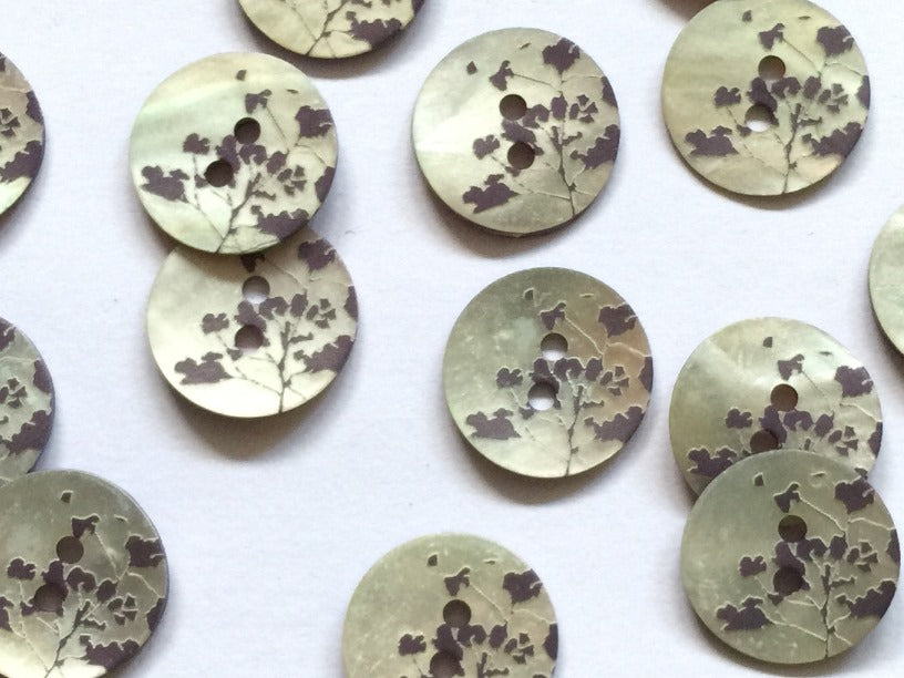 The Purple Laser Leaf buttons measure 18mm / 2/3"