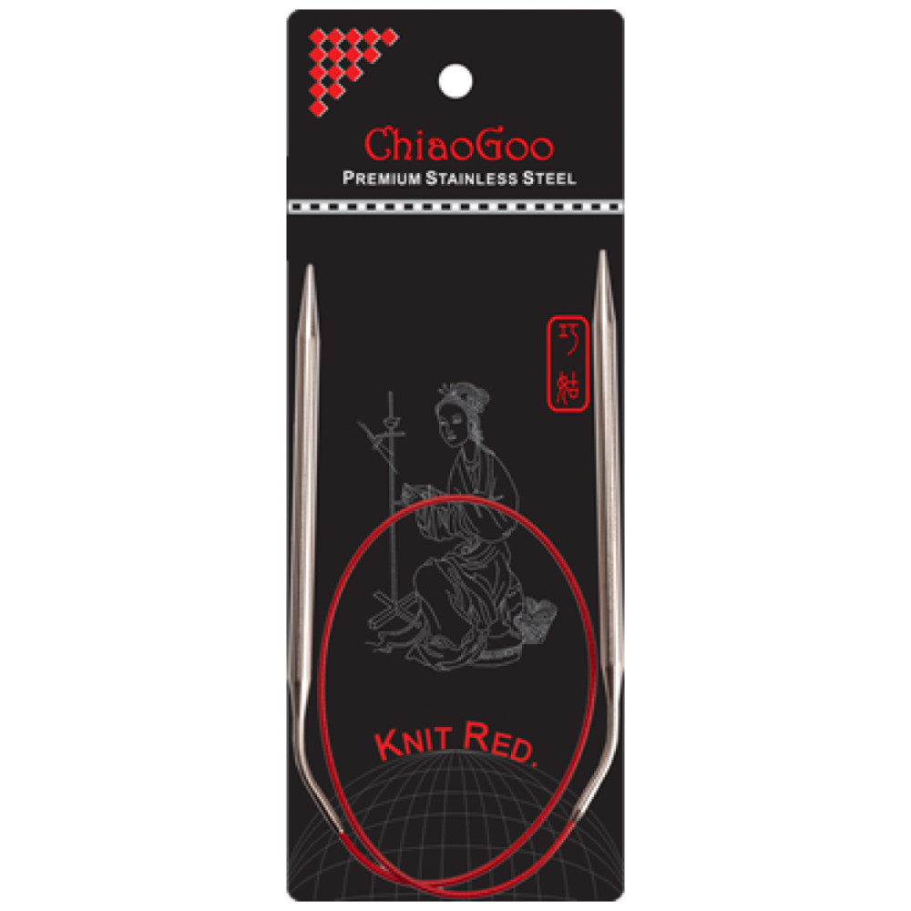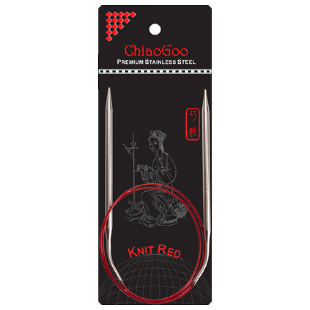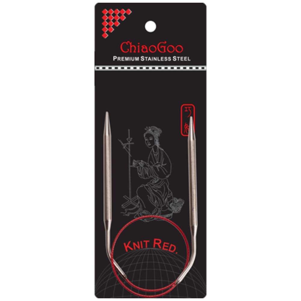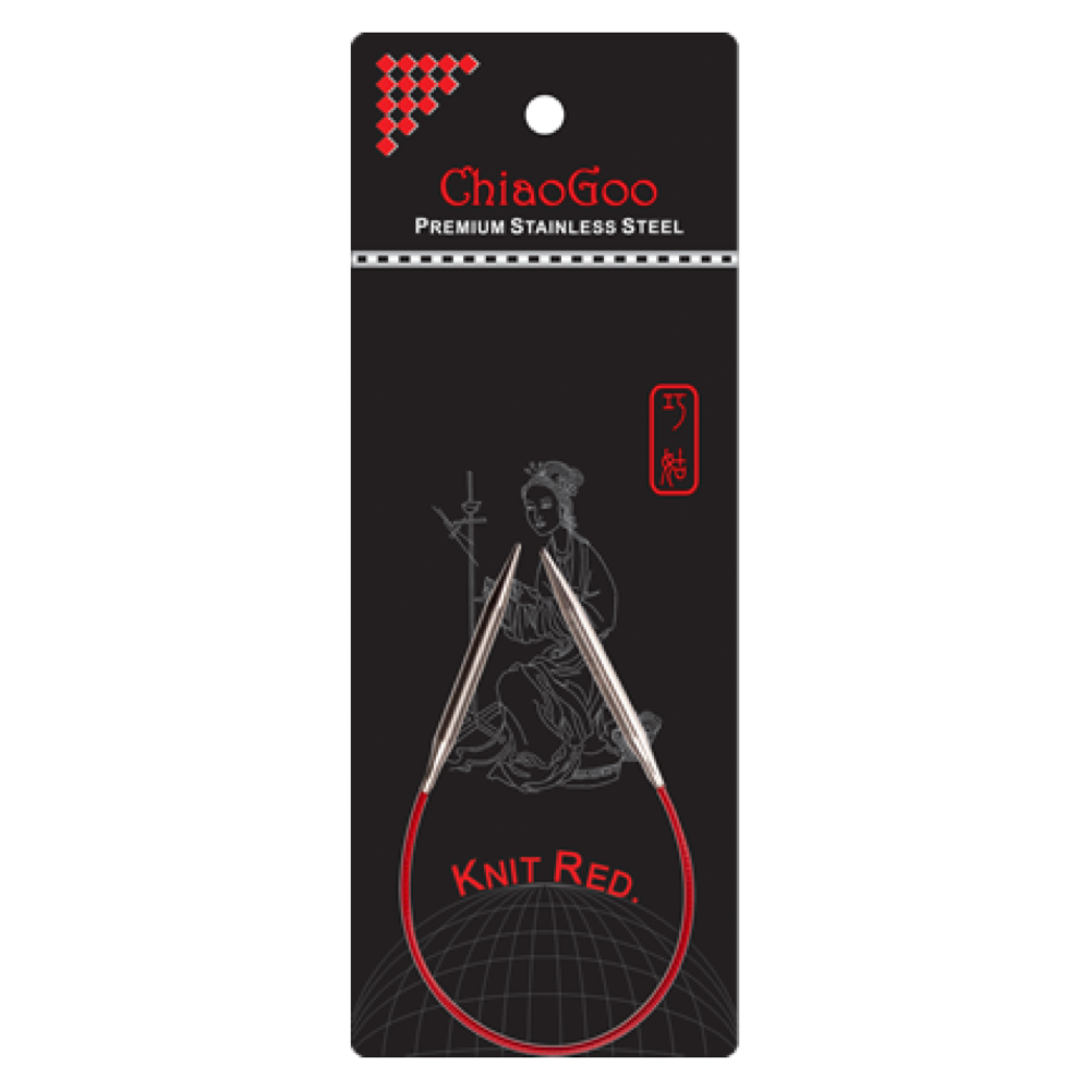 ChiaoGoo's Knit RED line of surgical stainless steel circulars have a smooth, satin-sheen finish and memory-free, multi-strand, steel cable coated with red nylon allowing yarn to slide right over. The precisely machined tips are ergonomically designed with a bend to ease hand fatigue. Needle size is permanently laser imprinted on each circular. The joins are just spectacular!