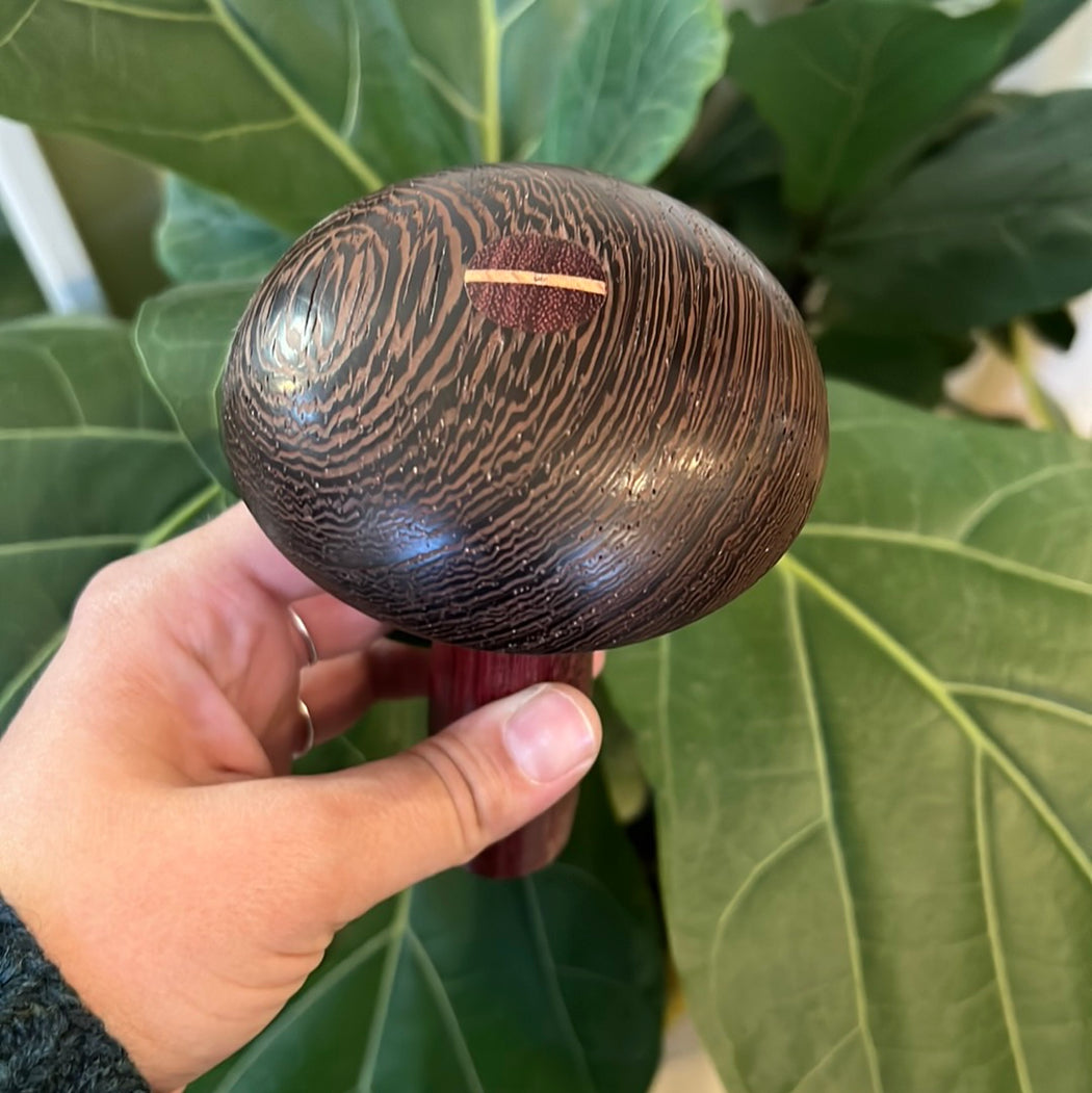 This beautiful wooden tool is used to provide a surface for mending of socks and other knitted fabrics. Shaped in the traditional form of either an egg or a mushroom, but absolutely unique in character, each darning egg is lovingly hand-turned from one piece by local woodworking enthusiast Wade Young (Jung WorkShop).