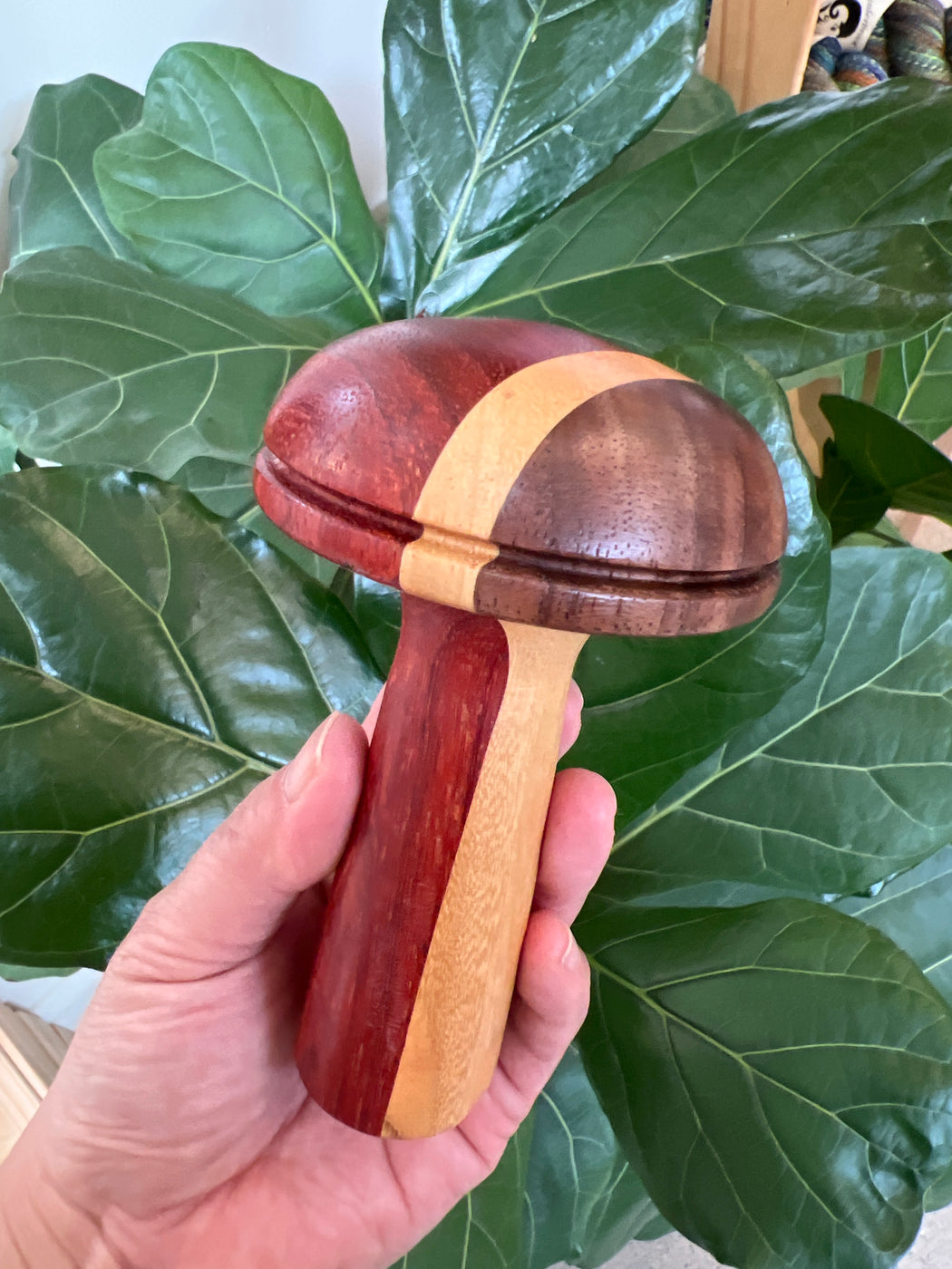 This beautiful wooden tool is used to provide a surface for mending of socks and other knitted fabrics. Shaped in the traditional form of either an egg or a mushroom, but absolutely unique in character, each darning egg is lovingly hand-turned from one piece by local woodworking enthusiast Wade Young (Jung WorkShop).