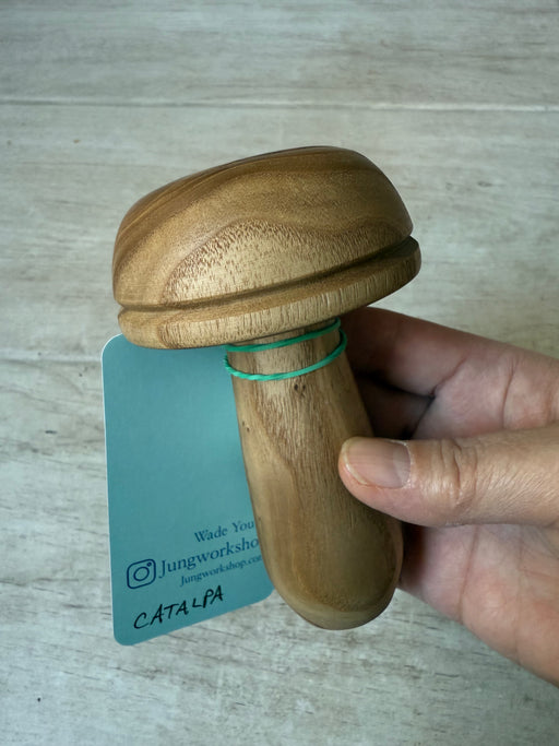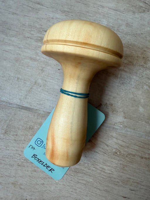 Introducing our wonderful selection of handmade wooden mending mushrooms . Each mushroom is unique, and made with different kinds of hardwoods butternut, limba, box elder, and catalpa. Choose your favourite - these mushrooms will last you a lifetime or more.