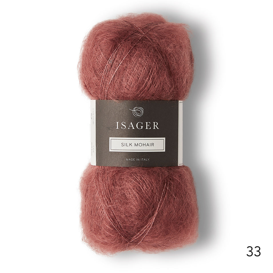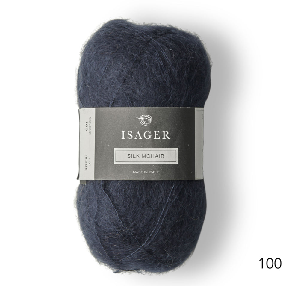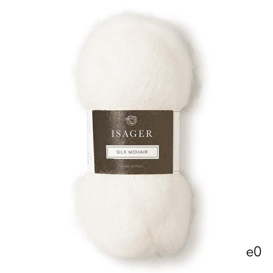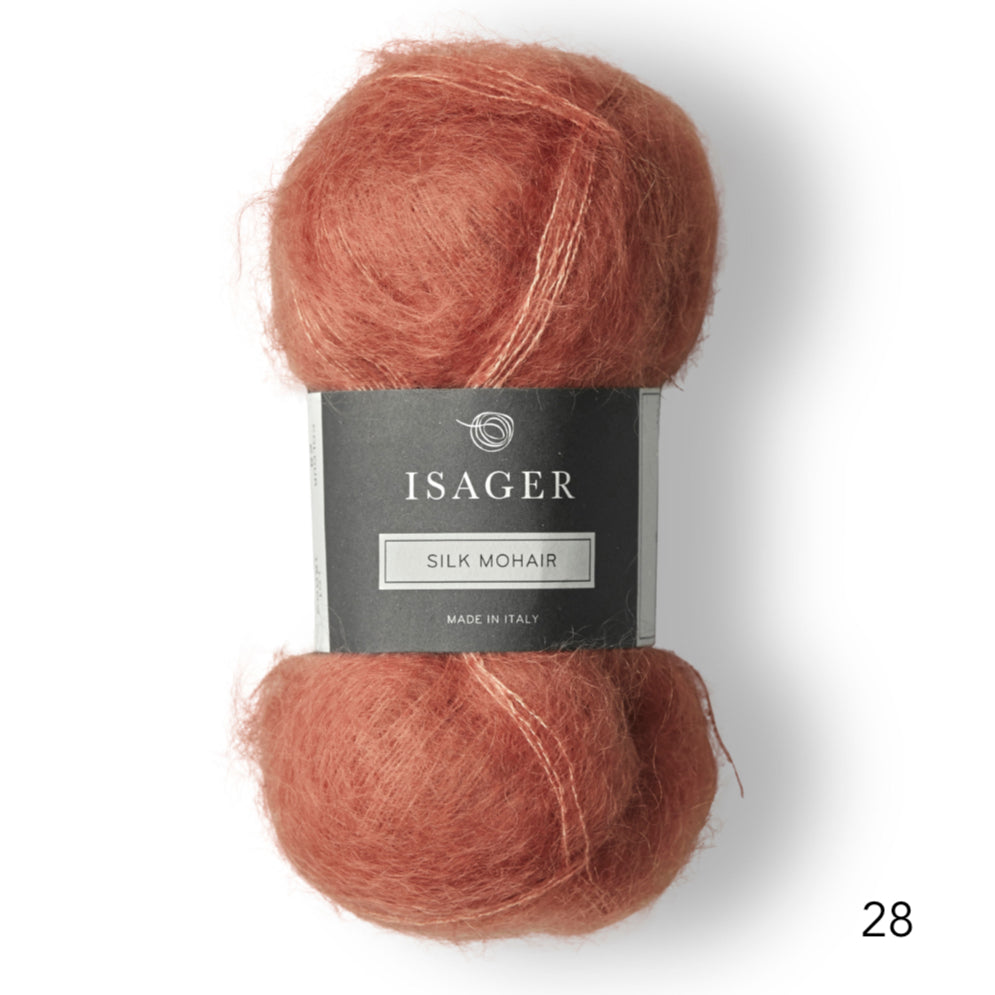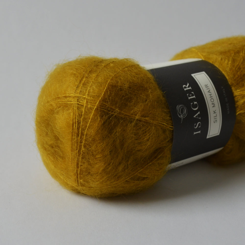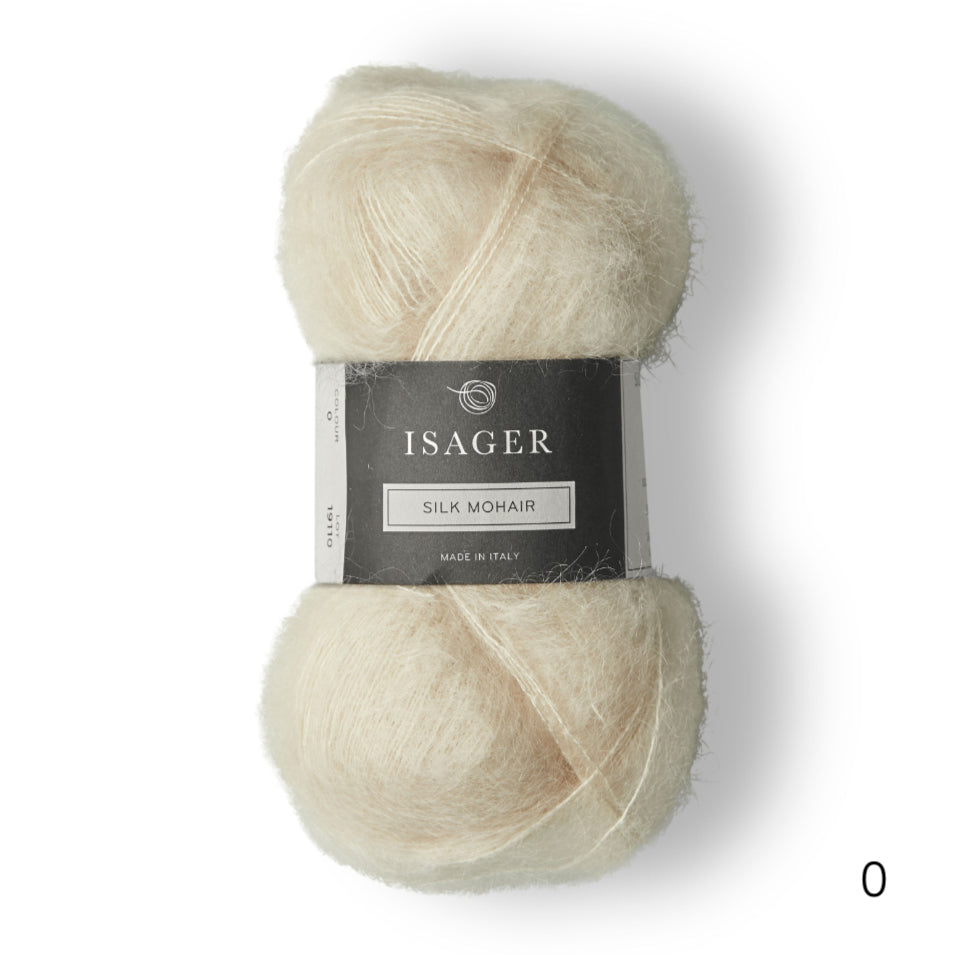 Our premier silk mohair yarn, Isager Silk Mohair has the best colour range and is some of the highest quality yarn we’ve ever carried. Silk Mohair has a fuzzy surface and is suited to knitting together with other yarns or using it on its own for warm, cozy projects like the Watashi no Yume socks. We most often pair it with other Isager yarns or fingering/DK weight yarns to give sweaters, mittens, and hats an extra layer of coziness.