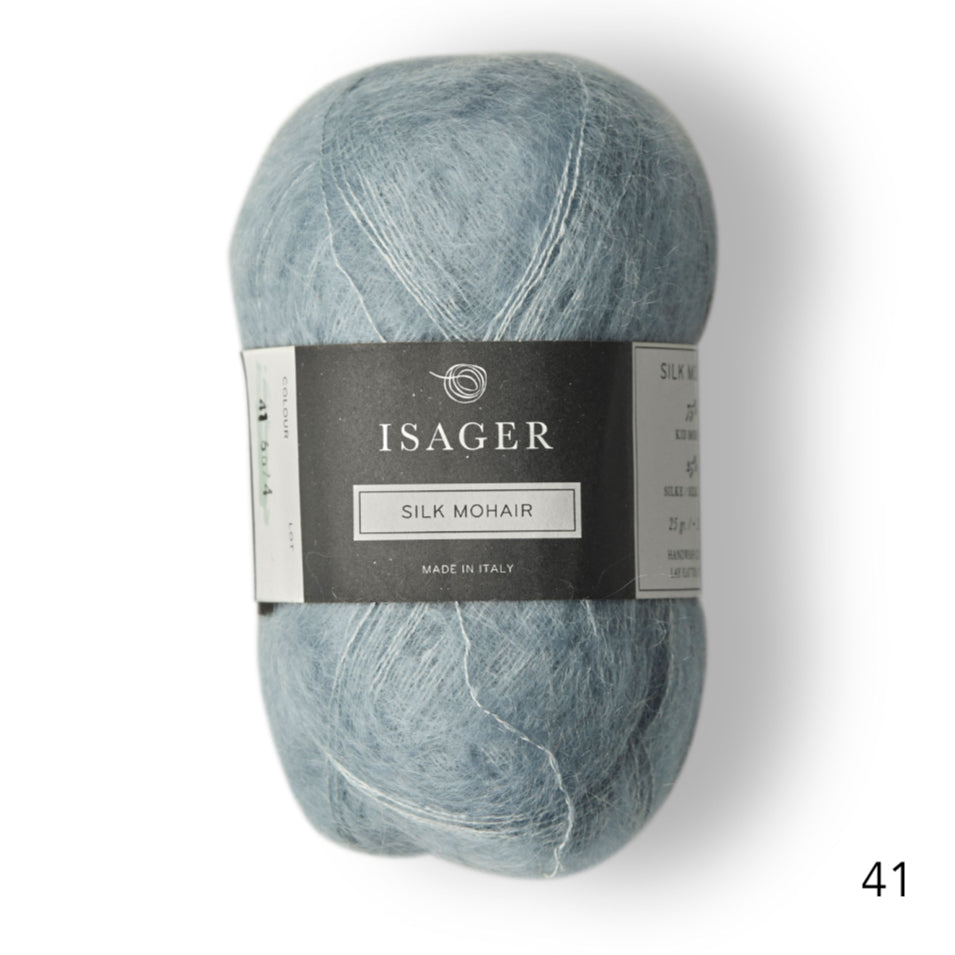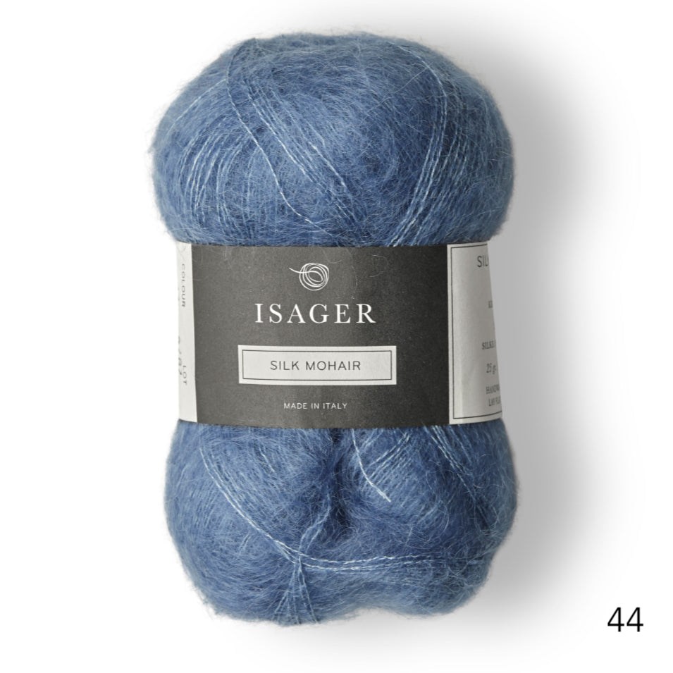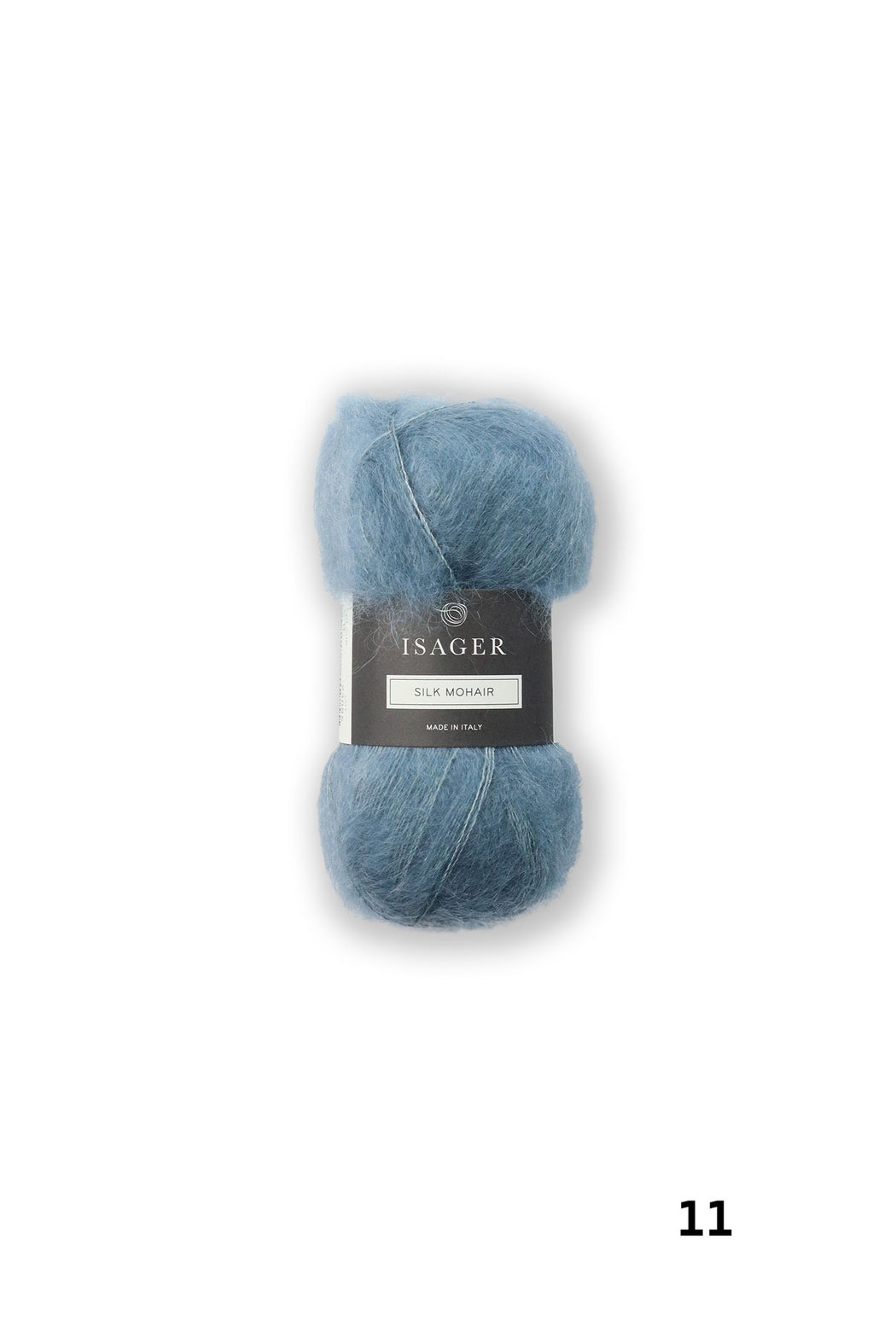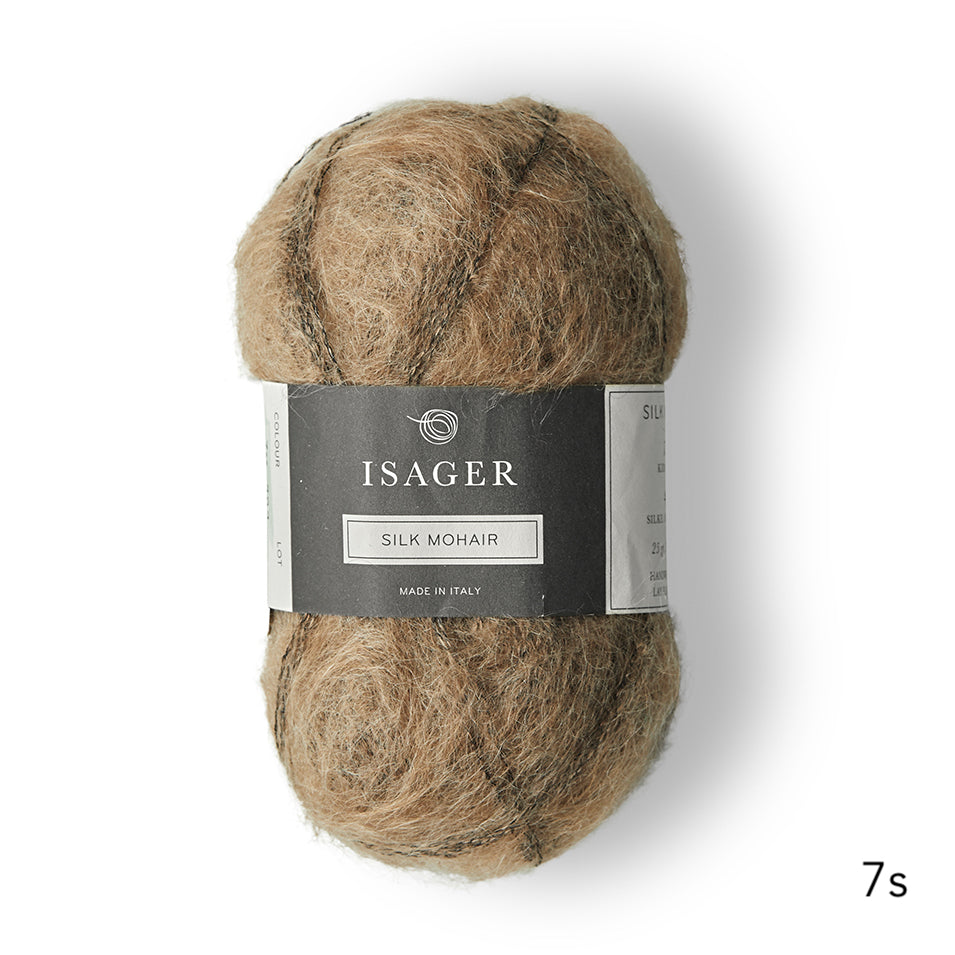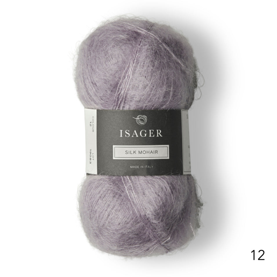 Our premier silk mohair yarn, Isager Silk Mohair has the best colour range and is some of the highest quality yarn we’ve ever carried. Silk Mohair has a fuzzy surface and is suited to knitting together with other yarns or using it on its own for warm, cozy projects like the Watashi no Yume socks. We most often pair it with other Isager yarns or fingering/DK weight yarns to give sweaters, mittens, and hats an extra layer of coziness.