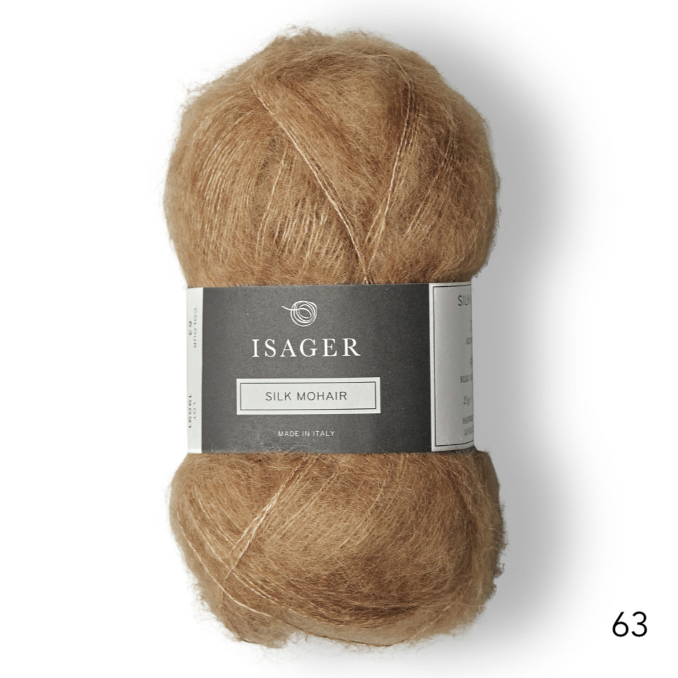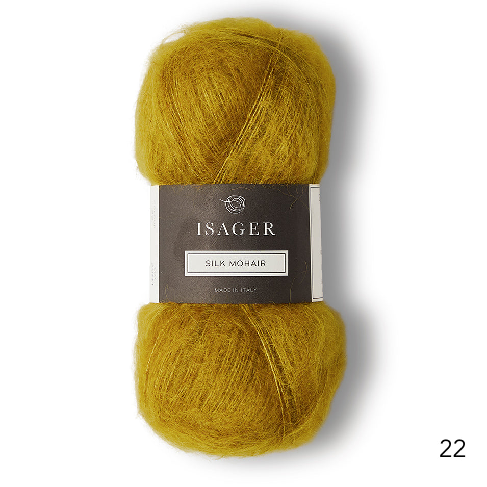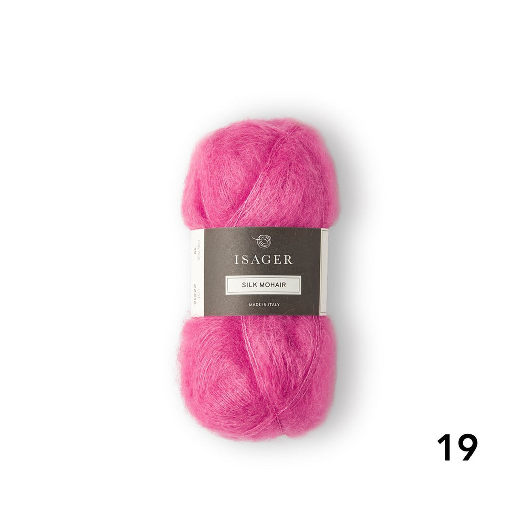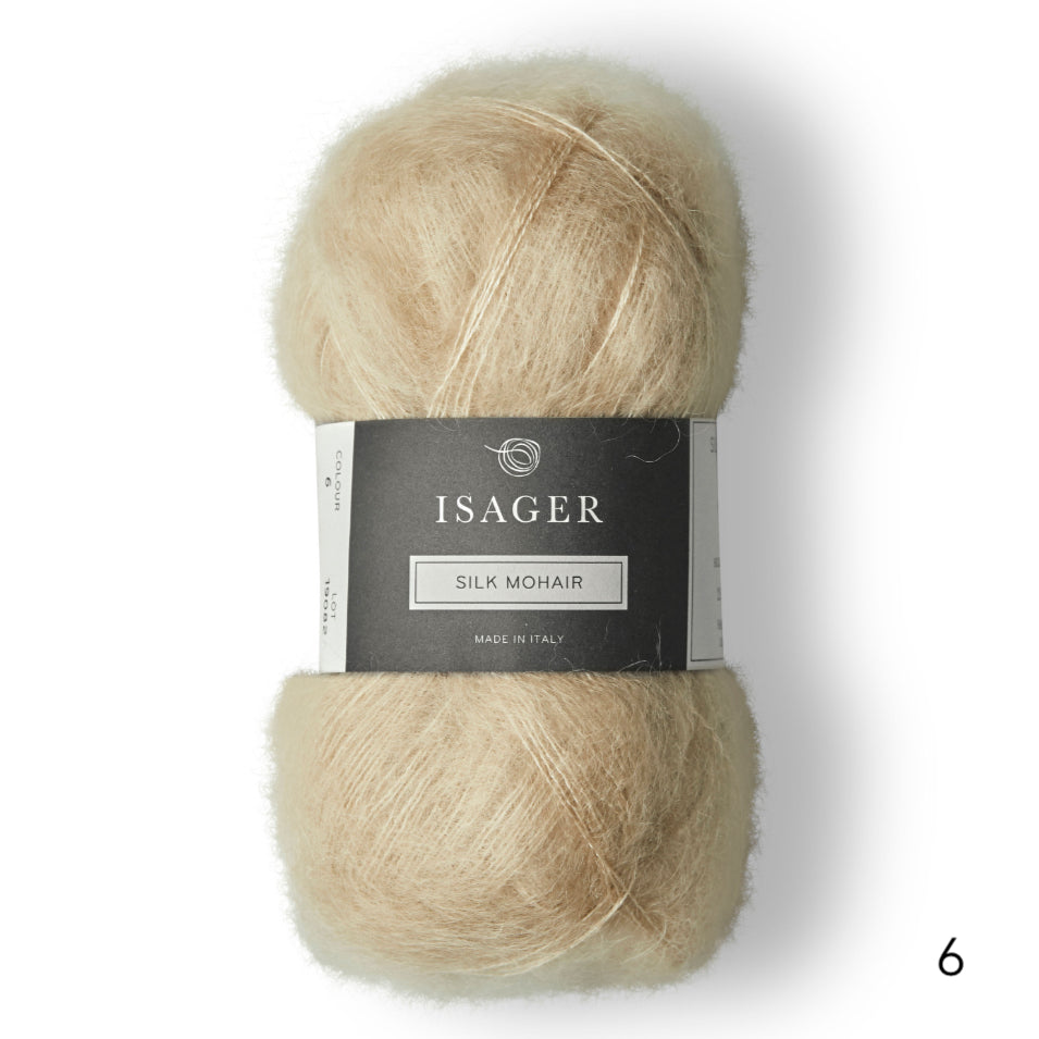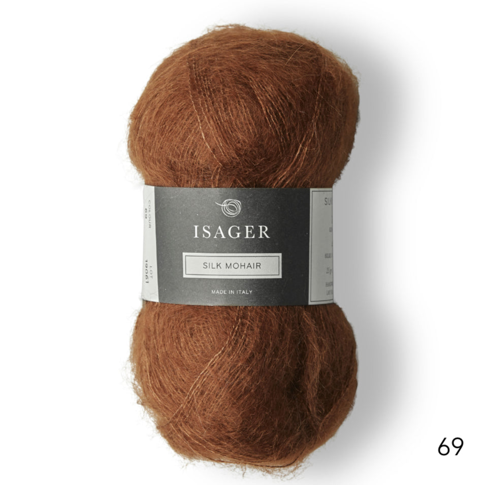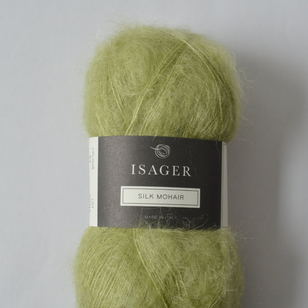 Our premier silk mohair yarn, Isager Silk Mohair has the best colour range and is some of the highest quality yarn we’ve ever carried. Silk Mohair has a fuzzy surface and is suited to knitting together with other yarns or using it on its own for warm, cozy projects like the Watashi no Yume socks. We most often pair it with other Isager yarns or fingering/DK weight yarns to give sweaters, mittens, and hats an extra layer of coziness.