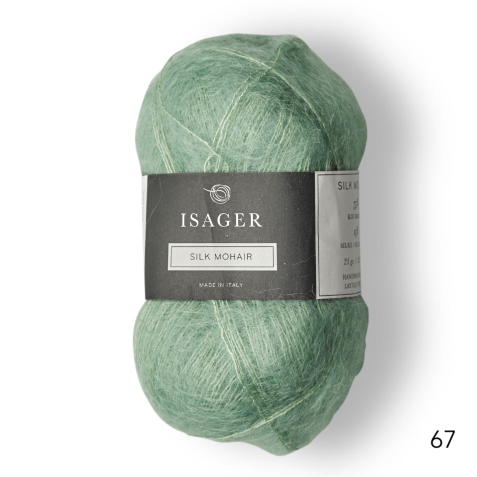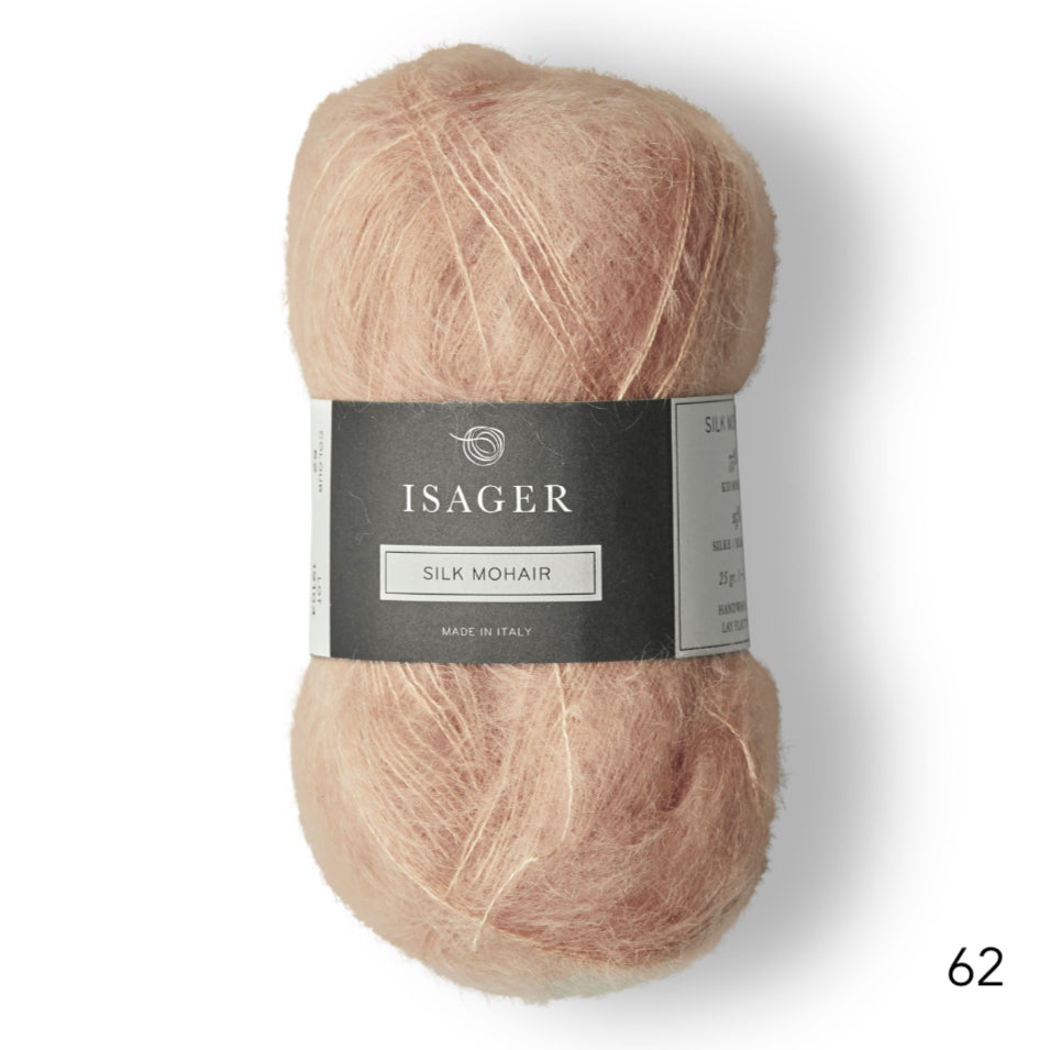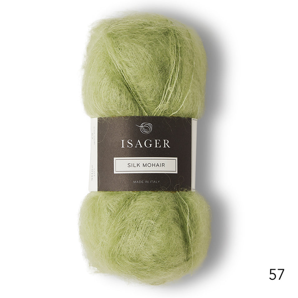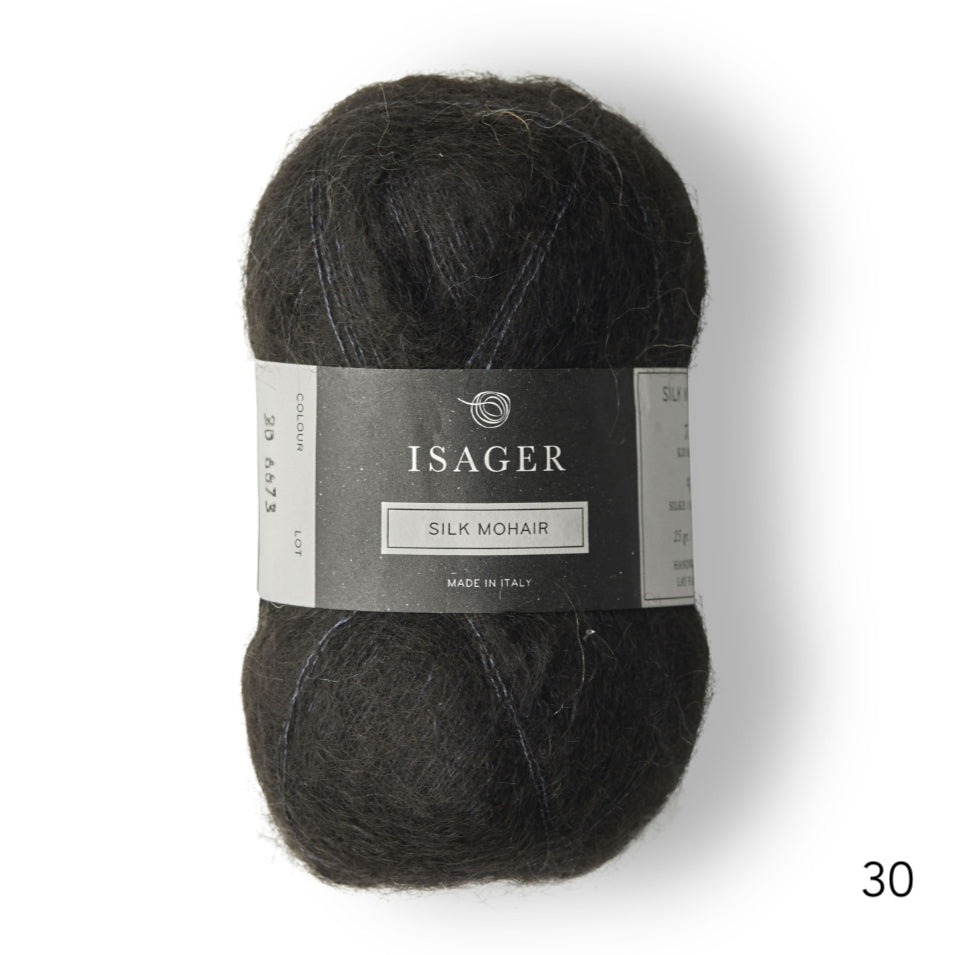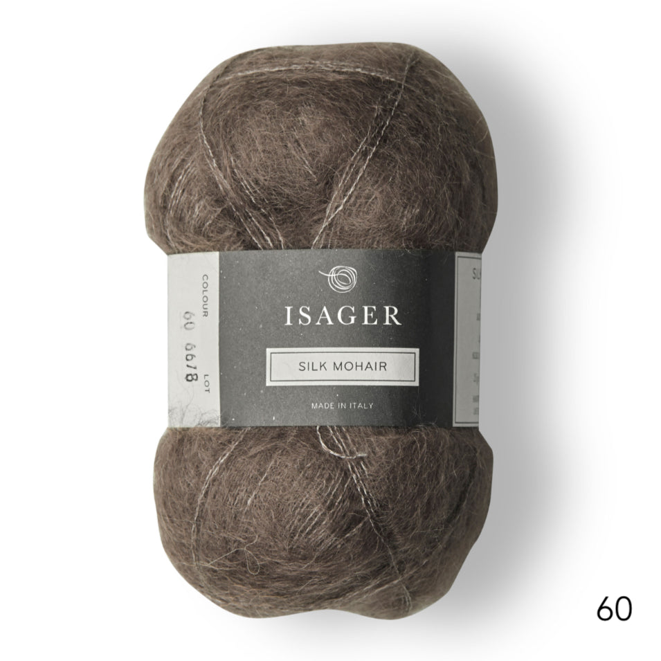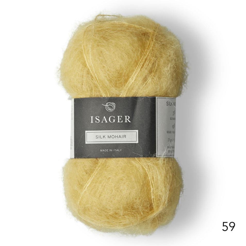 Our premier silk mohair yarn, Isager Silk Mohair has the best colour range and is some of the highest quality yarn we’ve ever carried. Silk Mohair has a fuzzy surface and is suited to knitting together with other yarns or using it on its own for warm, cozy projects like the Watashi no Yume socks. We most often pair it with other Isager yarns or fingering/DK weight yarns to give sweaters, mittens, and hats an extra layer of coziness.