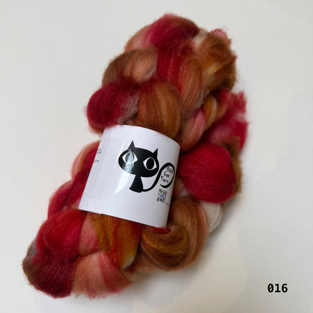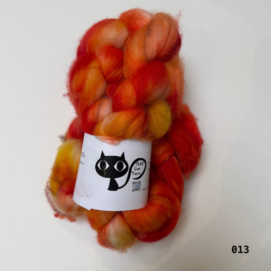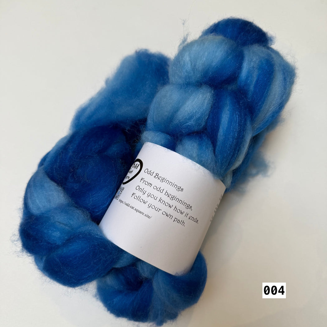 From odd beginnings, Only you know how it ends. Follow your own path. Hand dyed fibre 75/10/10 Superwash Merino, cashmere and silk. These are one of a kind, no two braids will be the same. Although the dye has been set, there may be a small amount of bleeding. It is recommended to wash separate in cool water and lay flat to dry. Every attempt has been made to accurately portray the colours. Please be aware that lighting and display on different devices may vary. This fibre was dyed in Hamilton, Ontario in a cat friendly household.