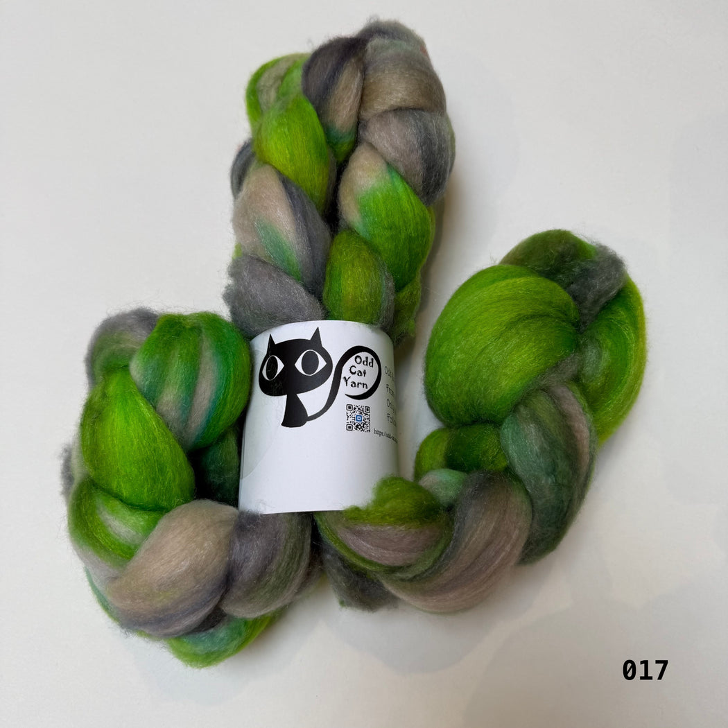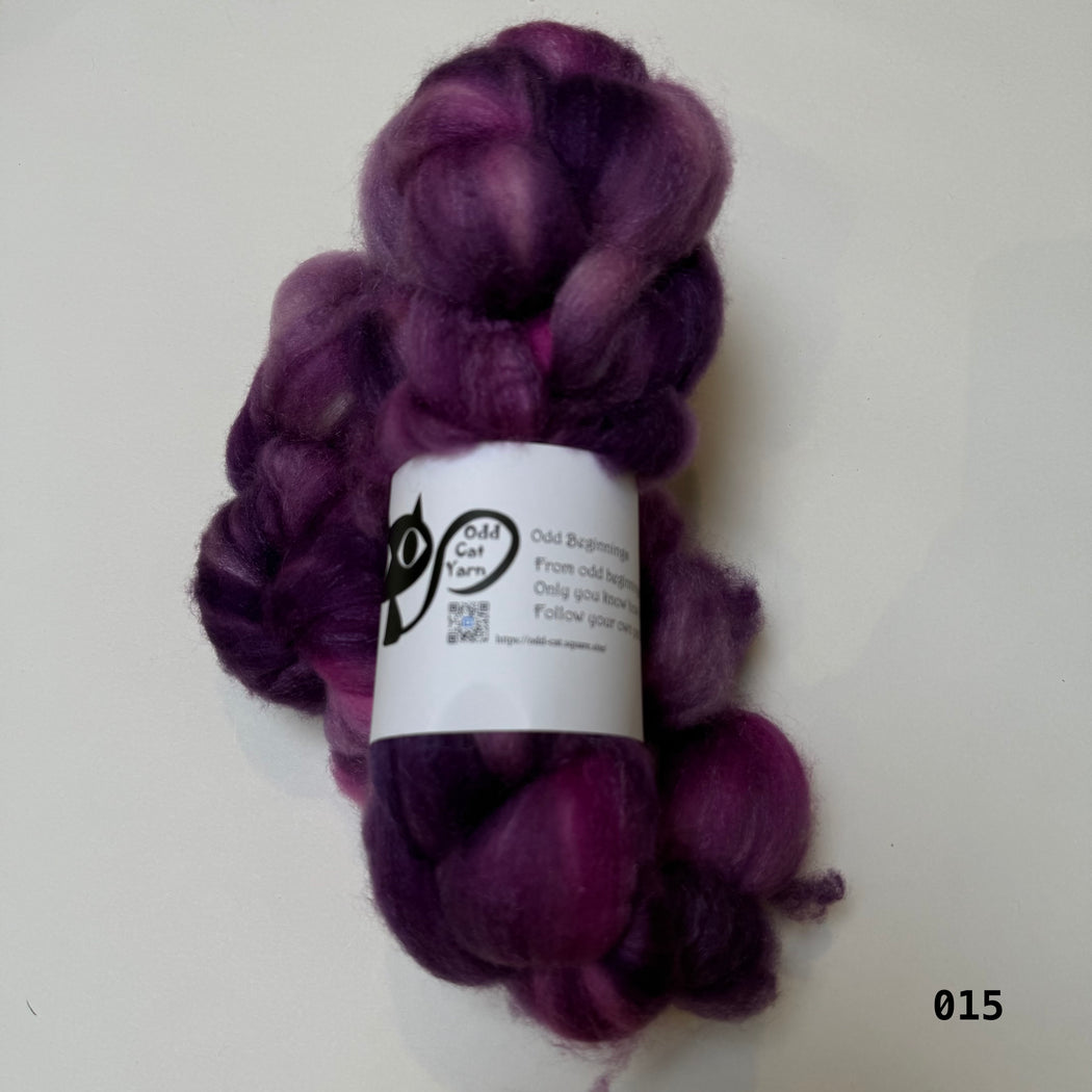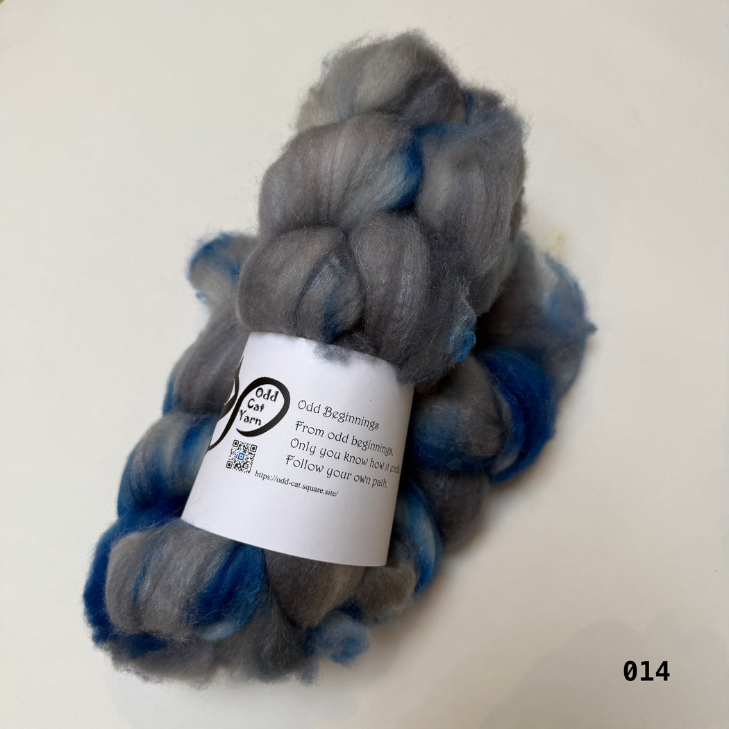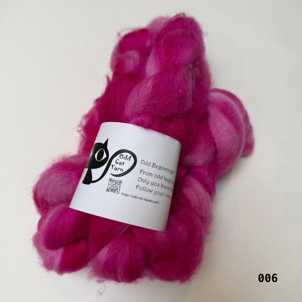 From odd beginnings, Only you know how it ends. Follow your own path. Hand dyed fibre 75/10/10 Superwash Merino, cashmere and silk. These are one of a kind, no two braids will be the same. Although the dye has been set, there may be a small amount of bleeding. It is recommended to wash separate in cool water and lay flat to dry. Every attempt has been made to accurately portray the colours. Please be aware that lighting and display on different devices may vary. This fibre was dyed in Hamilton, Ontario in a cat friendly household.