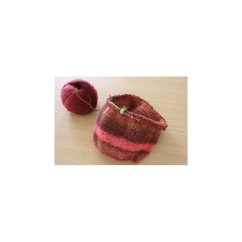 Stitch holder with soft, pliable cord is a convenient way to store your circular work. Keeps the shape without compromising the stitches. Length of cord is adjustable depending on the number of stitches to be held.