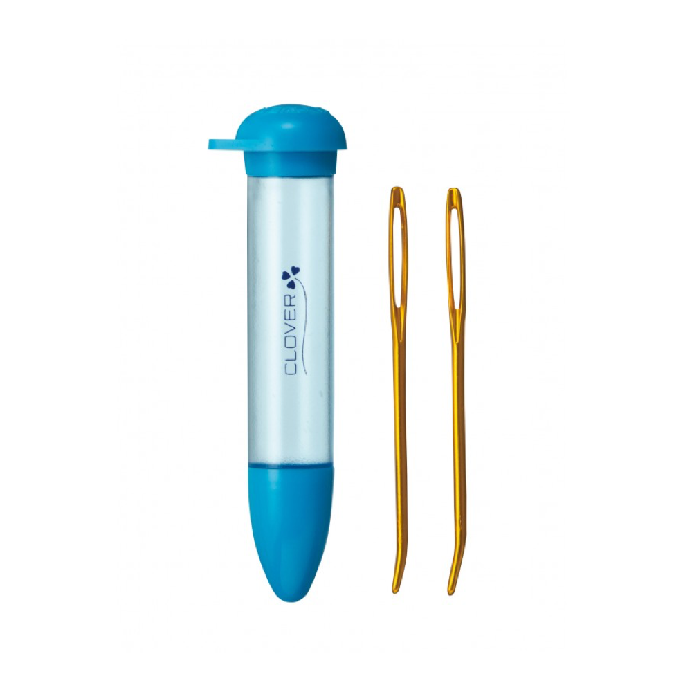 Jumbo Bent Tip Darning Needle Set (Blue): The curved tip of the needle makes hooking threads a breeze. In a convenient carrying case with a screw on cap stores needles neatly.
