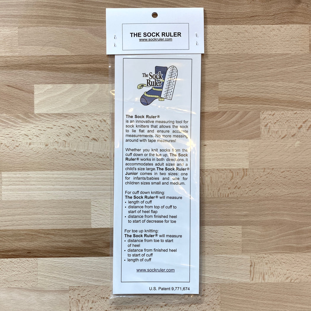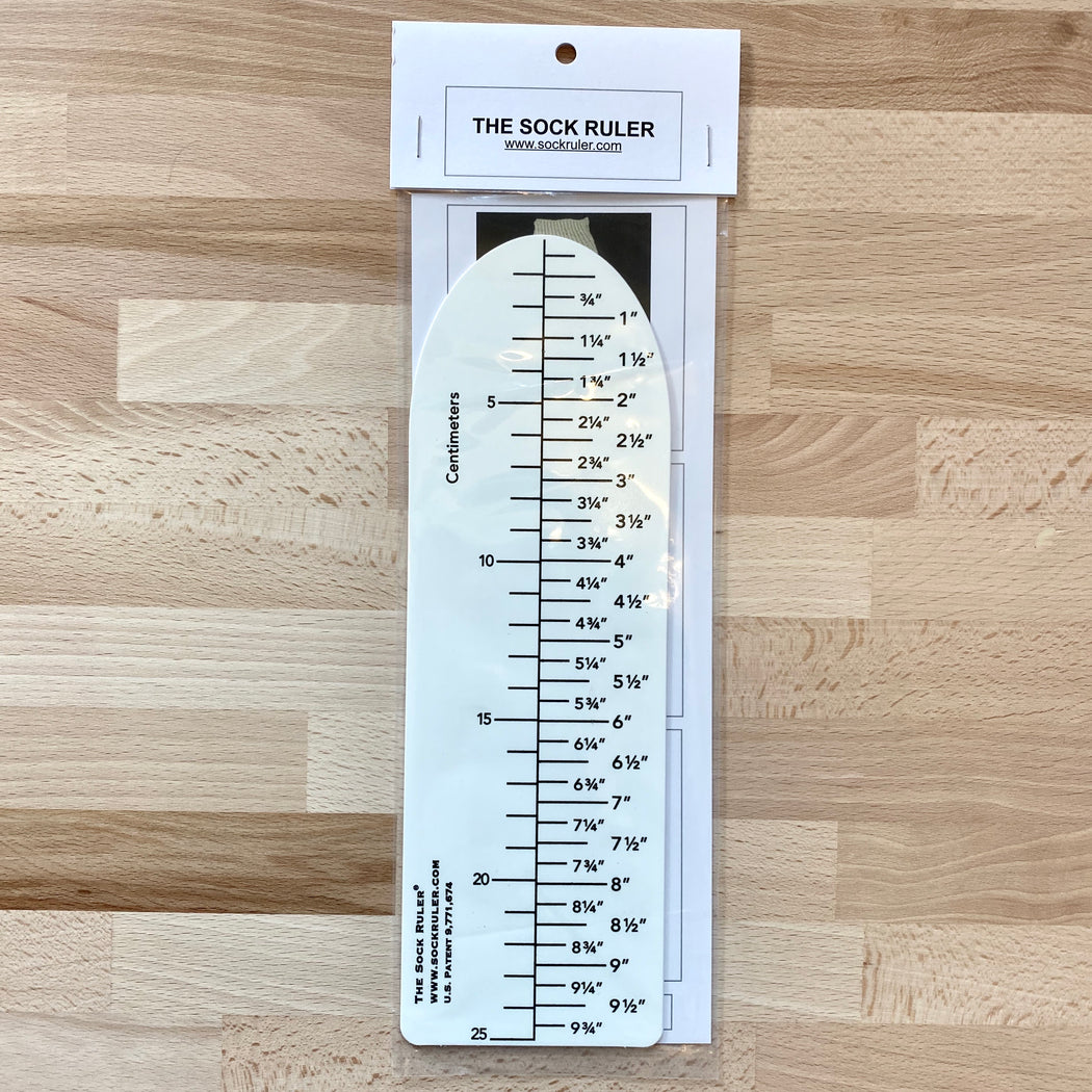 The Sock Ruler is an innovative measuring tool for sock knitters. It goes inside your work in progress sock, allowing you to measure it flat for a more accurate measurement.