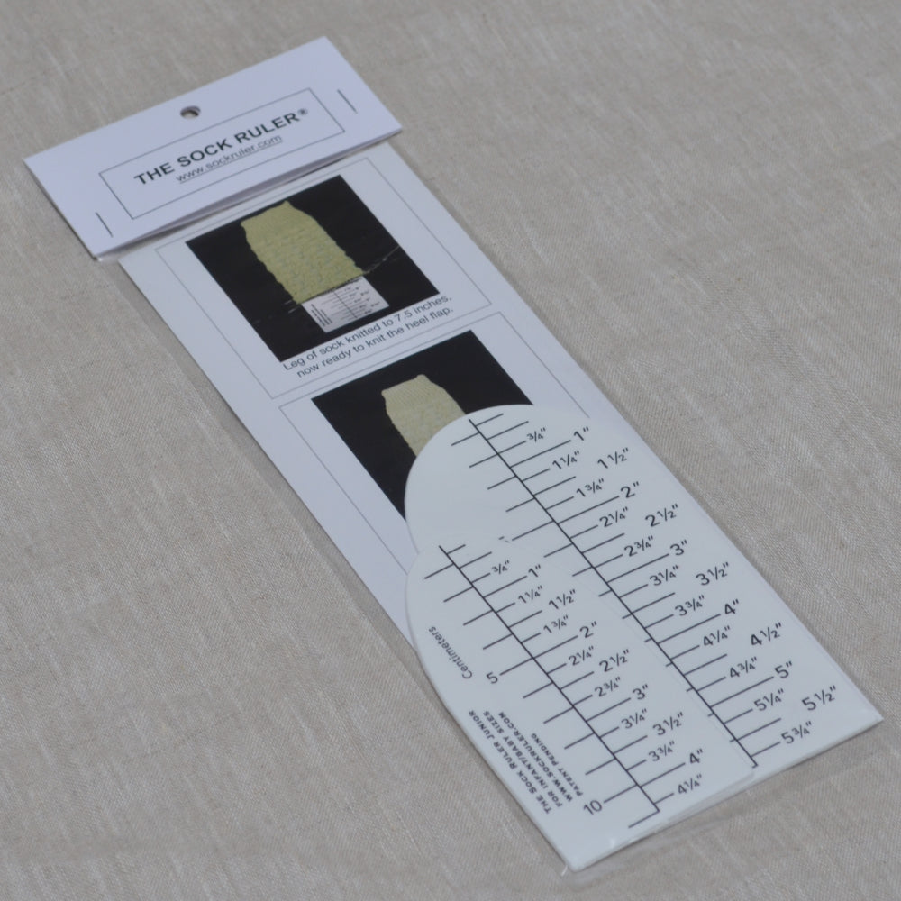 The Sock Ruler Junior is an innovative measuring tool for sock knitters. It goes inside your work in progress sock, allowing you to measure it flat for a more accurate measurement.