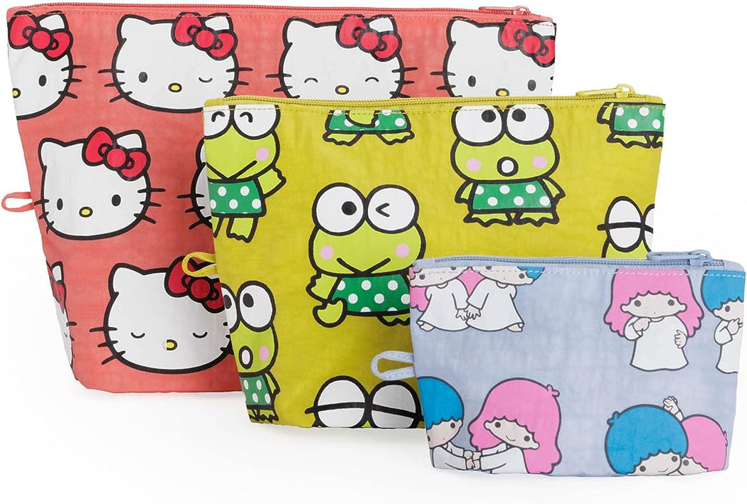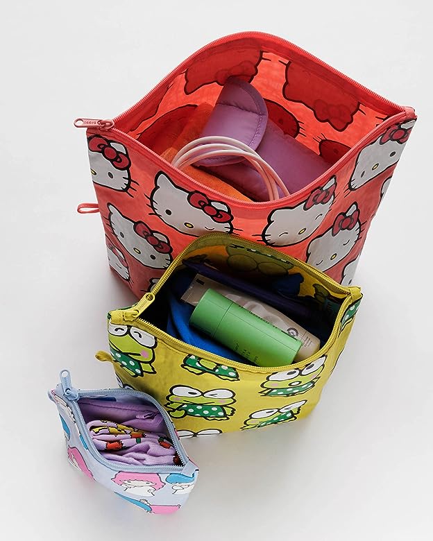 A set of three all purpose zip pouches for organization and travel, made from machine washable heavyweight nylon. Gusseted pouches lay flat or expand to hold your daily essentials. Medium pouch holds a Kindle or an iPad mini. Large pouch holds an iPad or a 12 inch MacBook.