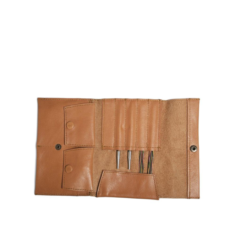Part of the Muud crochet line, this handcrafted case would be perfect for holding knitting needles and project-specific tools. This case features five needle/hook pockets inside, as well as two small closeable compartments for odds and ends. The whole thing folds neatly and snaps closed, making it easy to bring anywhere.