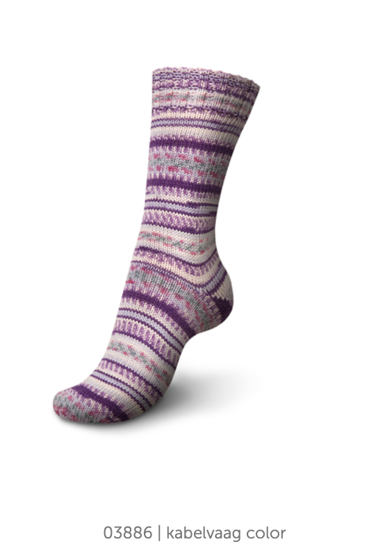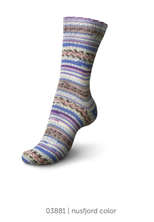 Project Suggestions: Choose a simple cuff down or toe up sock pattern, and let the self patterning yarn do all the work of making your socks look fantastic. For a simple cuff down pattern, our staff members love Very Vanilla Socks by Jo-Anne Klim, or A Nice Ribbed Sock by Glenna C.