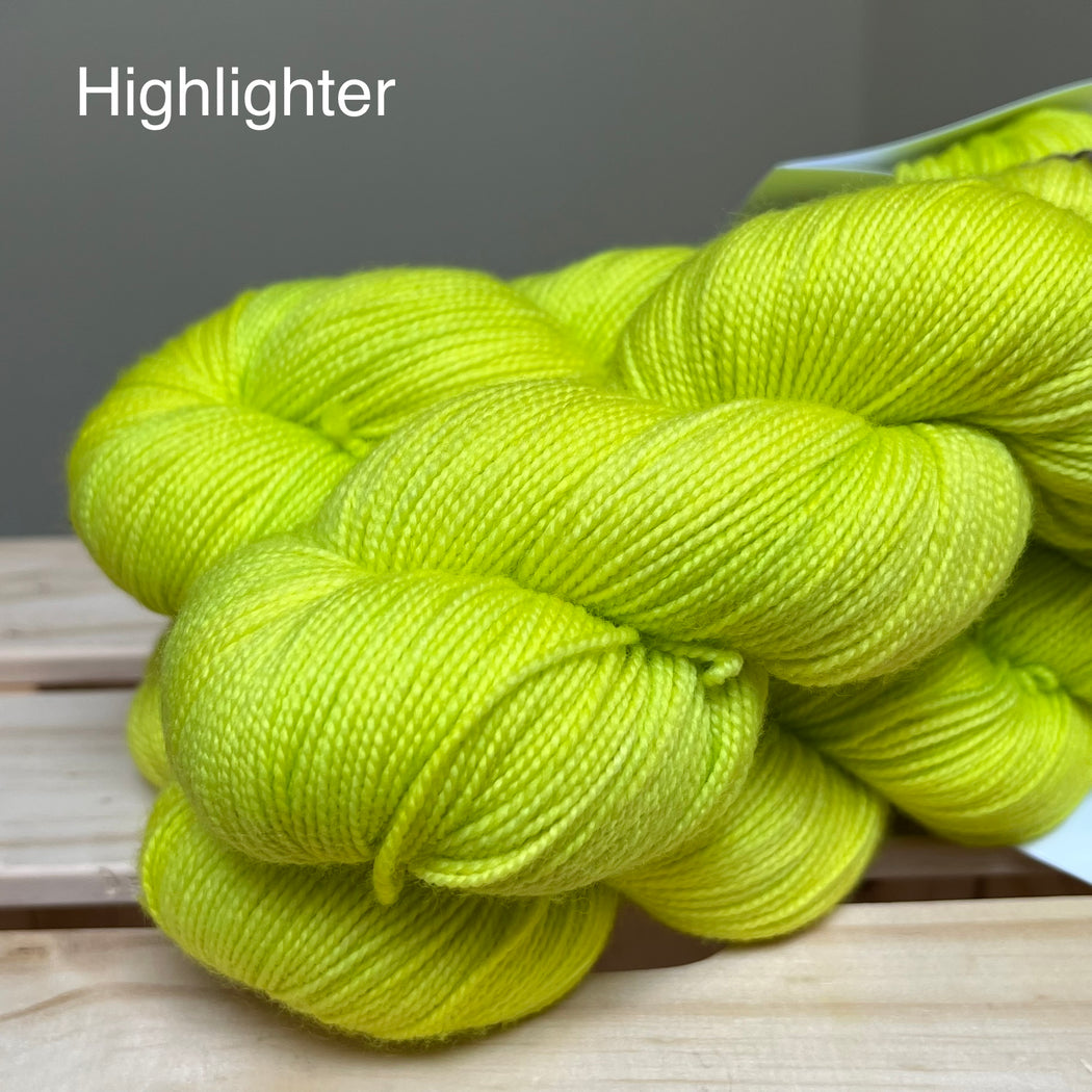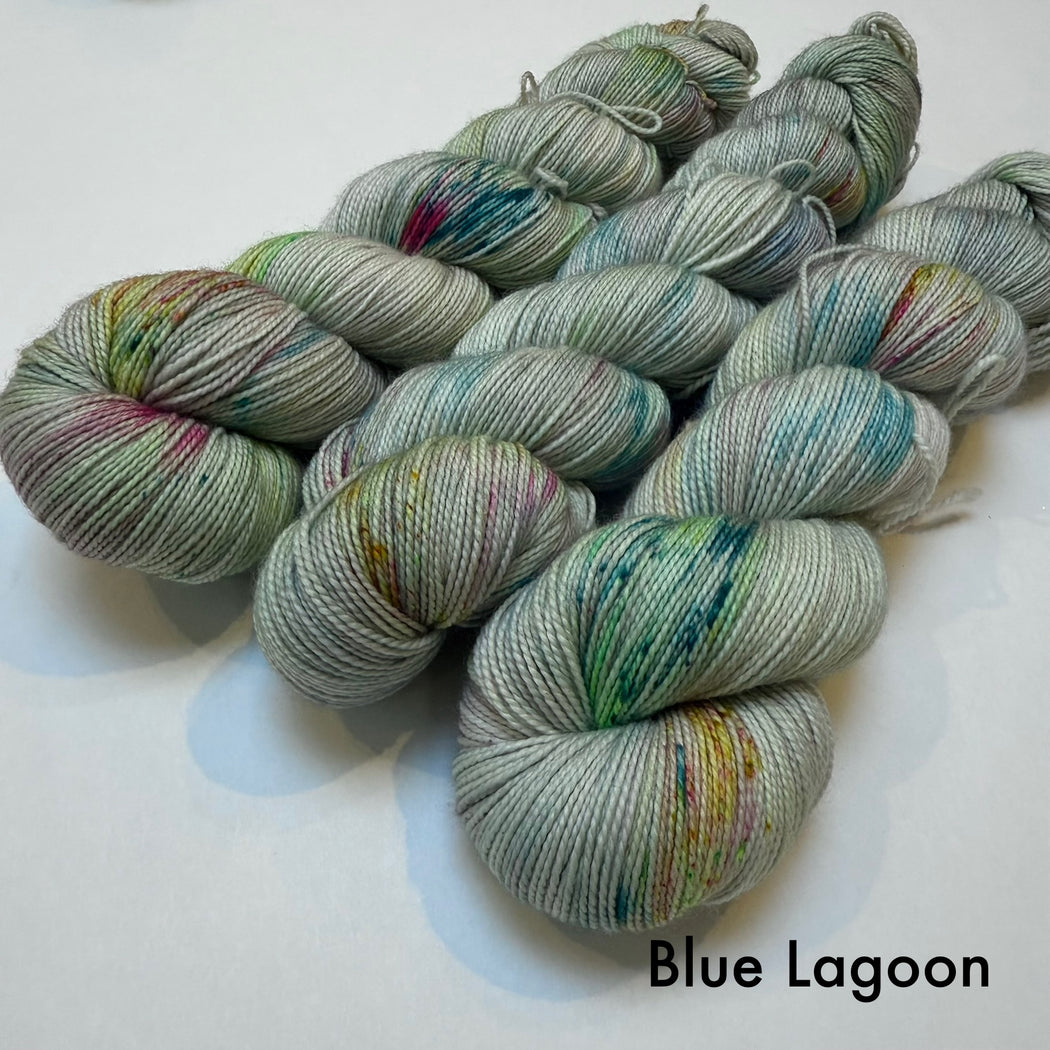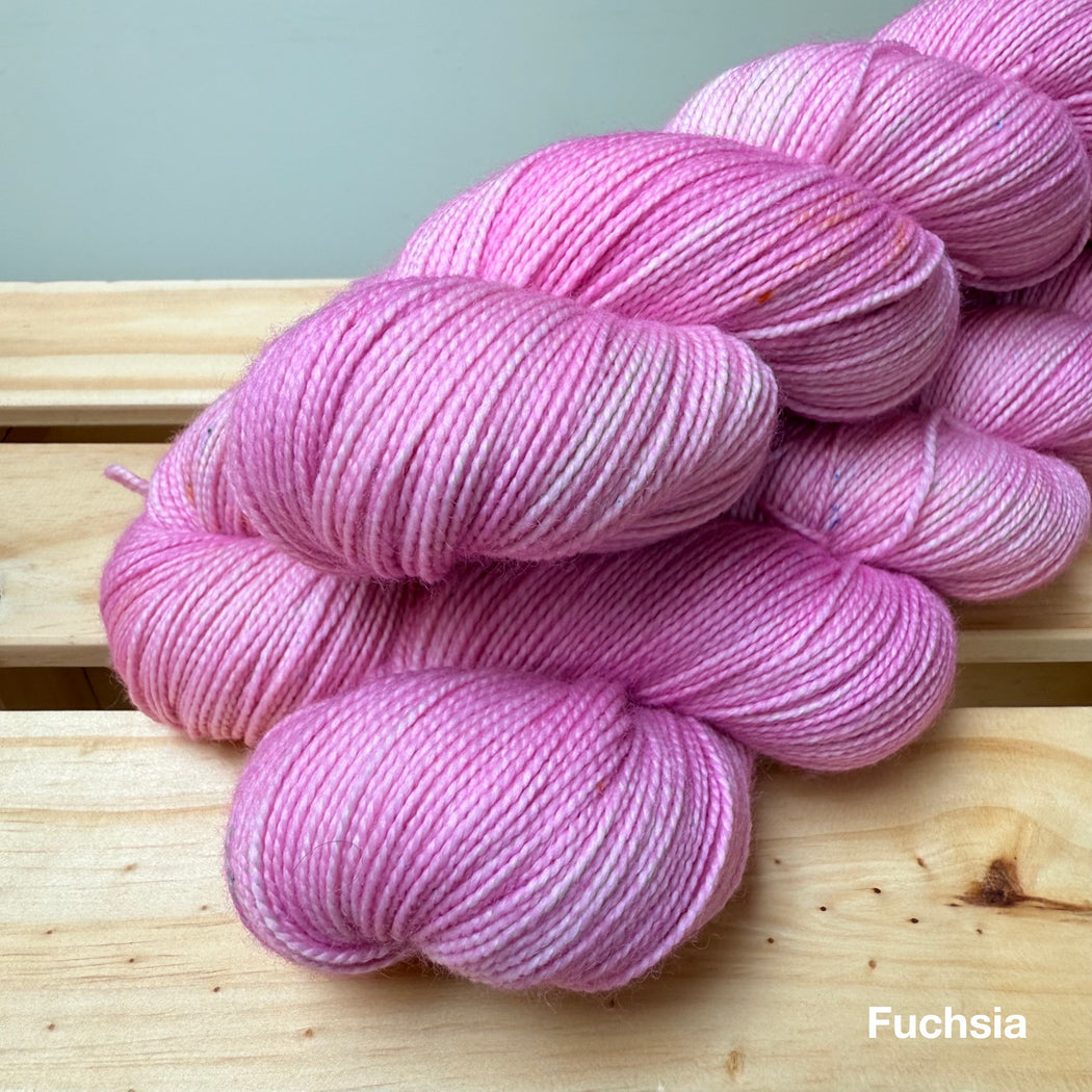 The perfect sock yarn with added nylon and a high twist for extra durability, Skein Study's Deluxe Sock. A blend of 80% of springy Superwash Merino with 20% Nylon. A strong yet softly tactile sock yarn with a beautiful sheen that really highlights the hand-dyed colours of Skein Study.