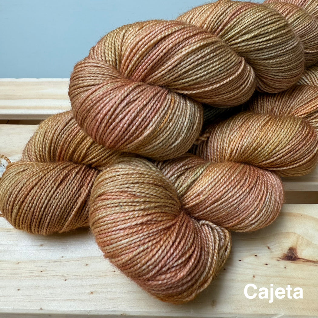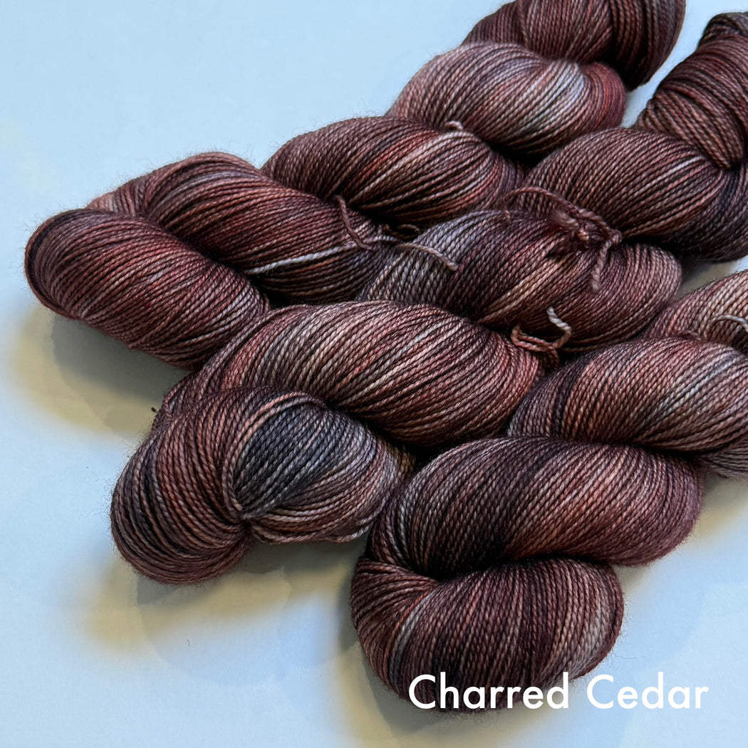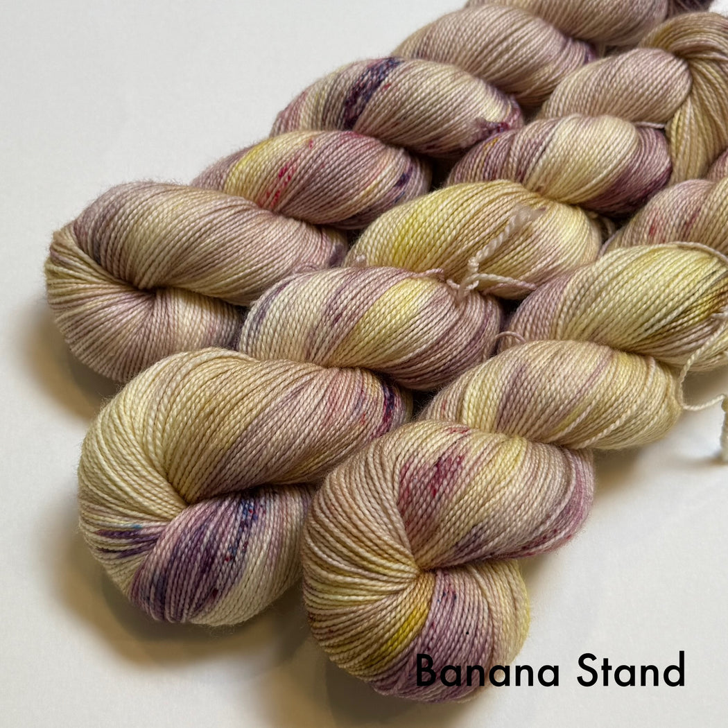 The perfect sock yarn with added nylon and a high twist for extra durability, Skein Study's Deluxe Sock. A blend of 80% of springy Superwash Merino with 20% Nylon. A strong yet softly tactile sock yarn with a beautiful sheen that really highlights the hand-dyed colours of Skein Study.
