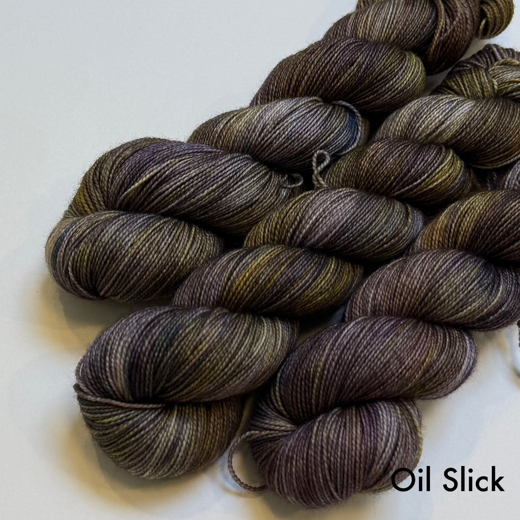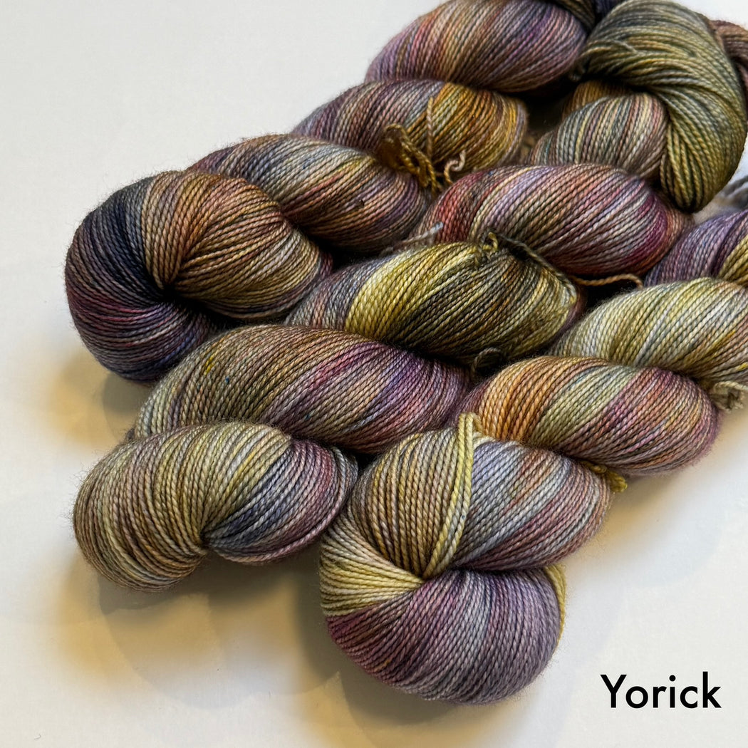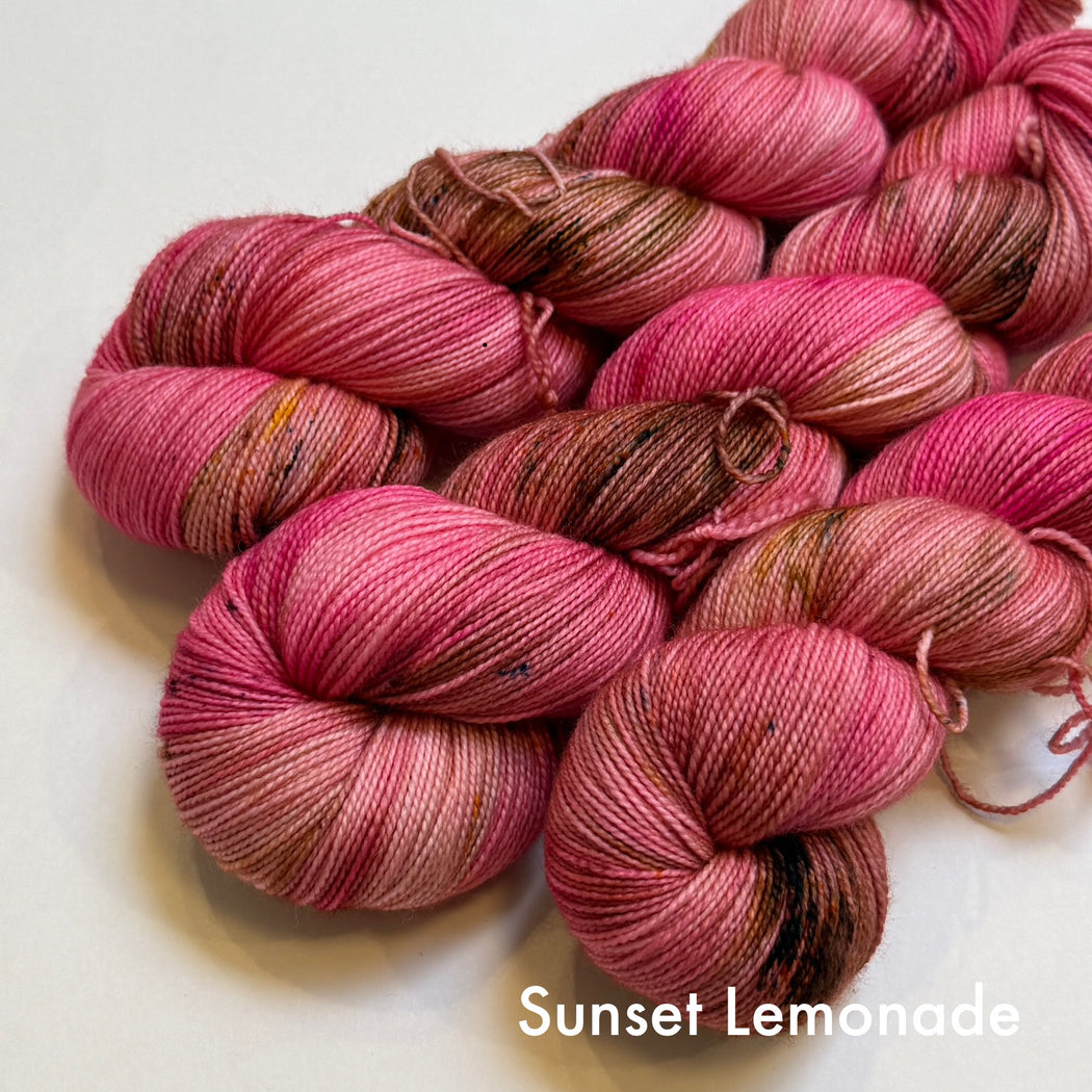 The perfect sock yarn with added nylon and a high twist for extra durability, Skein Study's Deluxe Sock. A blend of 80% of springy Superwash Merino with 20% Nylon. A strong yet softly tactile sock yarn with a beautiful sheen that really highlights the hand-dyed colours of Skein Study.
