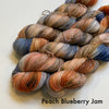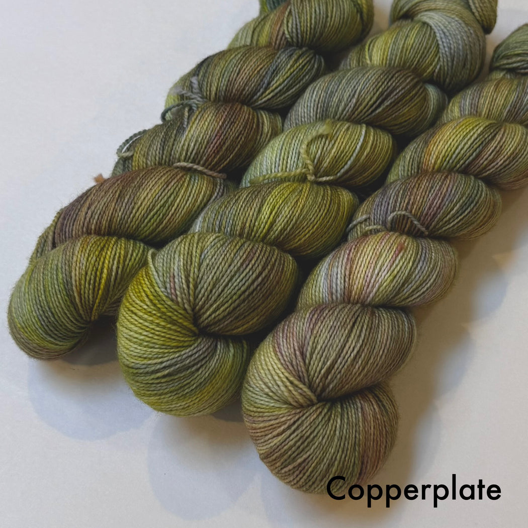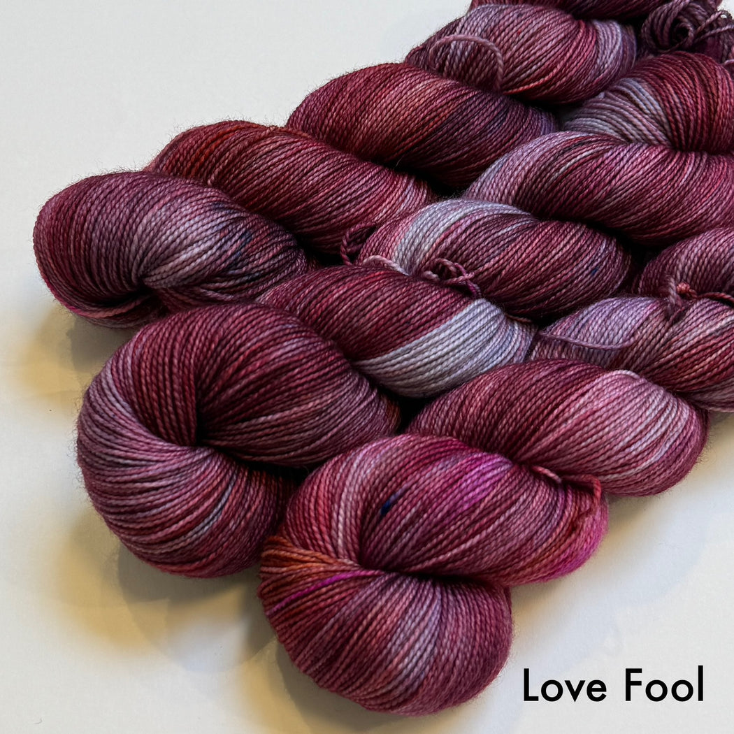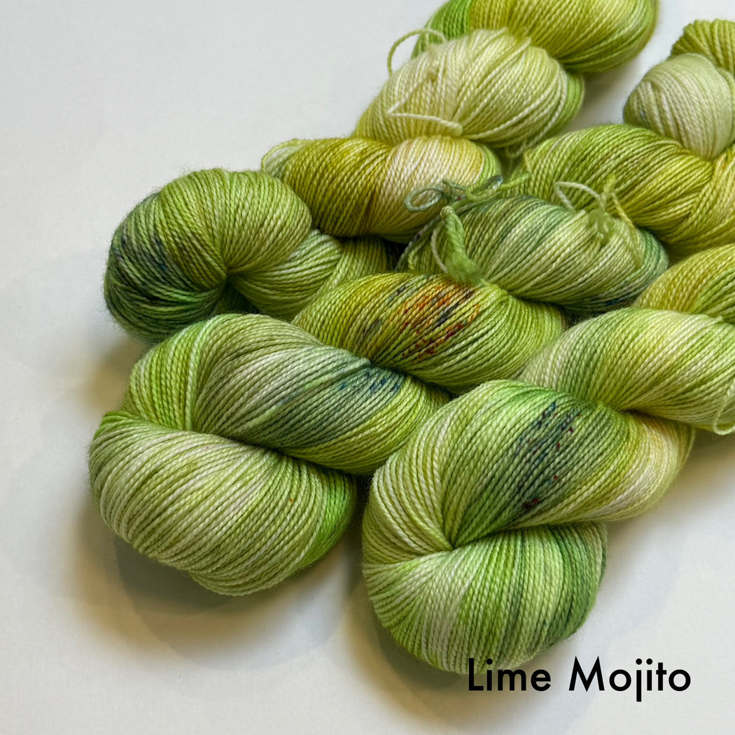 The perfect sock yarn with added nylon and a high twist for extra durability, Skein Study's Deluxe Sock. A blend of 80% of springy Superwash Merino with 20% Nylon. A strong yet softly tactile sock yarn with a beautiful sheen that really highlights the hand-dyed colours of Skein Study.